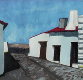 Spanisches Dorf Acryl auf Papierm Mit Rahmen 63 x 83 cm